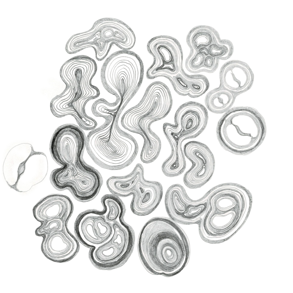 のちに描画の過程を辿ってみれば、段階的な変化を遂げる局面があったり、運動パターンにある一定の傾向があることが見えてきた。