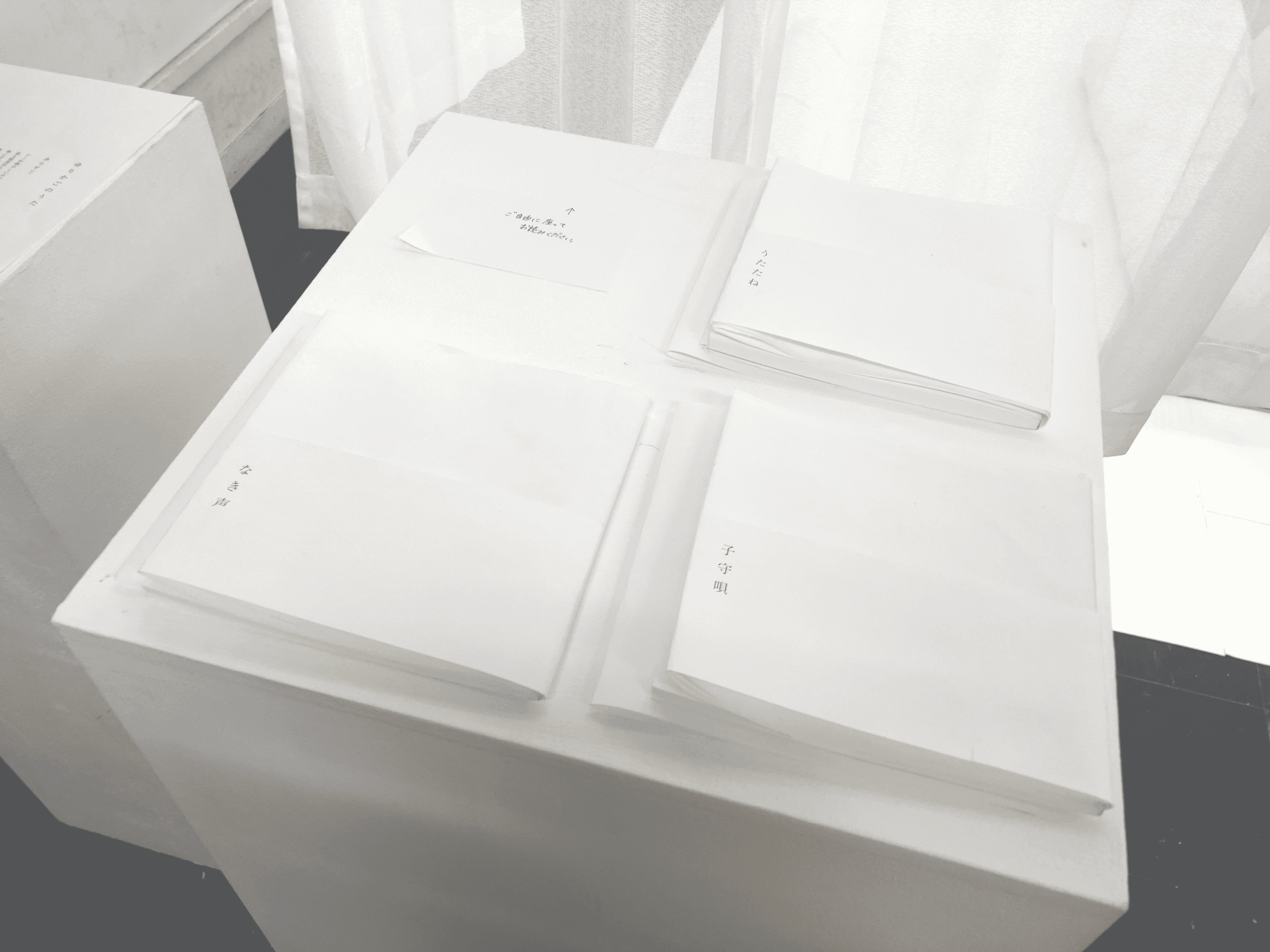 また、「泣き声」「子守唄」「うたたね」と詩集を編み、読み耽るための空間を構成した。